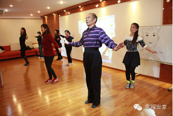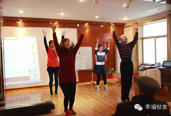 天桥区幸福世家照料中心的员工联合幸福世家的老师唐老师首先为过生日的叔叔阿姨们献上了他们准备已久的舞蹈《小苹果》。