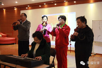 就在大家都吃蛋糕、吃寿桃时,其他叔叔阿姨们纷纷献歌,祝福我们的寿星。上图为叔叔和幸福世家的员工合唱歌曲。