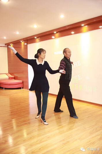 唐老师和他的学生一起表演的拉丁舞。拉丁舞可不是一时半会能学会的,阿姨能跟上唐老师的步伐已经很棒了。跳的时候,虽然有音乐伴奏,但是唐老师还是嘴里喊着“一二三四、二二三四……”这样的牌子,帮助阿姨踩准音乐。