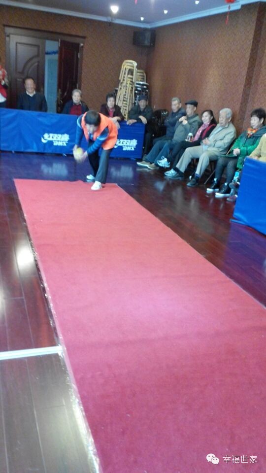 皮球、矿泉水瓶、红地毯组成了我们的老年保龄球赛场。十瓶砸倒七瓶,阿姨技术是不是很厉害呀?