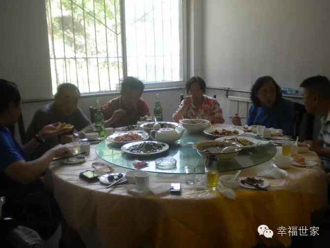 午饭是樱桃园的农家宴,摘了一上午,大家都累了,所以午饭大家都很有食欲。