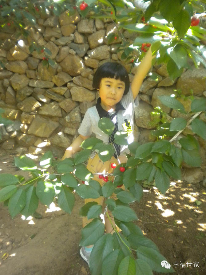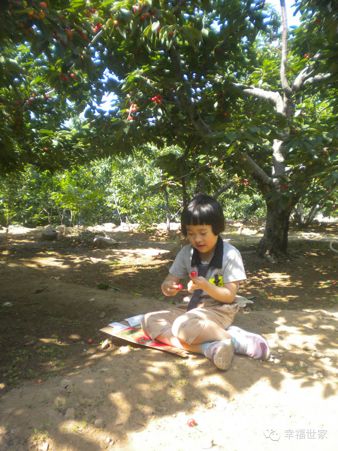 红红的小果实,小巧精致,很得小朋友的喜爱。樱桃酸酸甜甜的口感,也很符合小朋友的口味。一起来的小姑娘不停地穿梭在樱桃树间,稍不留神,就跑一边自己玩去了。