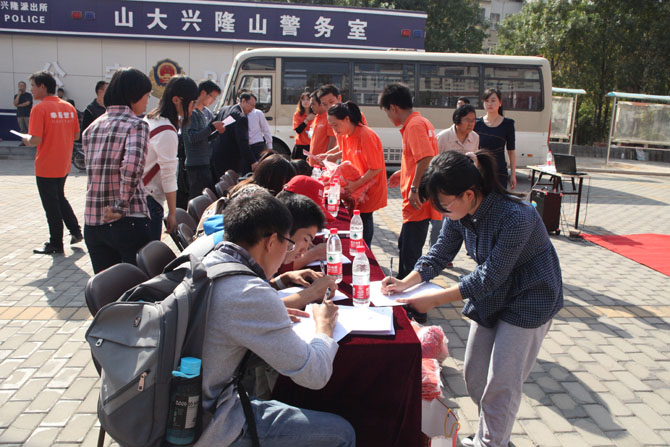 上午九点半,义工招募大会正式开始。山东幸福世家老龄产业投资有限公司窦江涛、原山东省委办公厅副主任任培金、山东大学兴隆山校区学生代表分别发表了致辞。会后,大学生们争先恐后地报名登记,“作为一名大一新生,我要利用我的课余时间,用实际行动去关爱需要帮助的老人,奉献出自己的力量”,邱展鹏同学说。