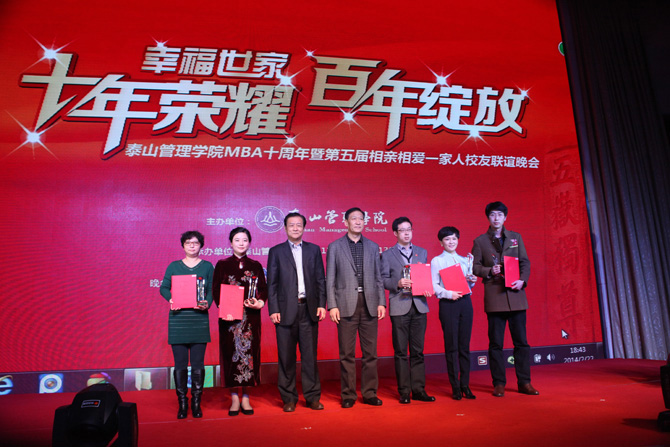 2月22日,“十年荣耀,百年绽放”2004-2014泰山管理学院MBA十周年暨第五届相亲相爱一家人校友联谊晚会在山东大厦金色大厅举行。