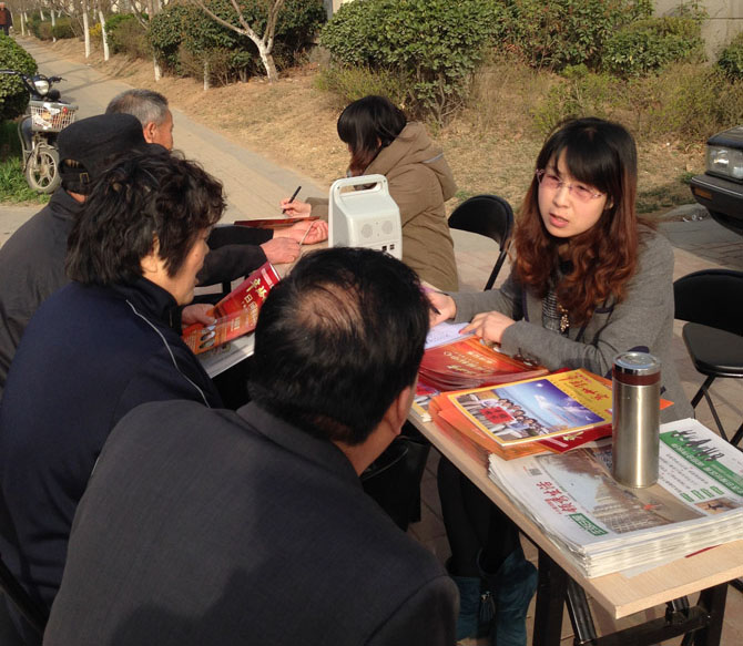 因为有十六里河街道办事处的帮忙,老人们都非常自觉排队来检查,现场秩序非常好。